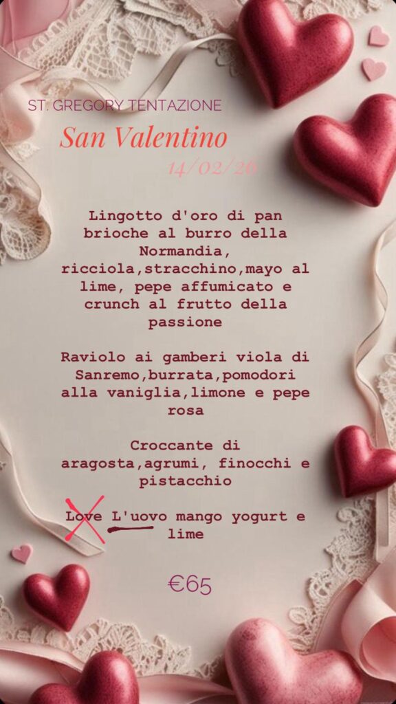 Per la serata più romantica dell’anno, St. Gregory Tentazione propone un’esperienza gastronomica pensata per sorprendere e sedurre.