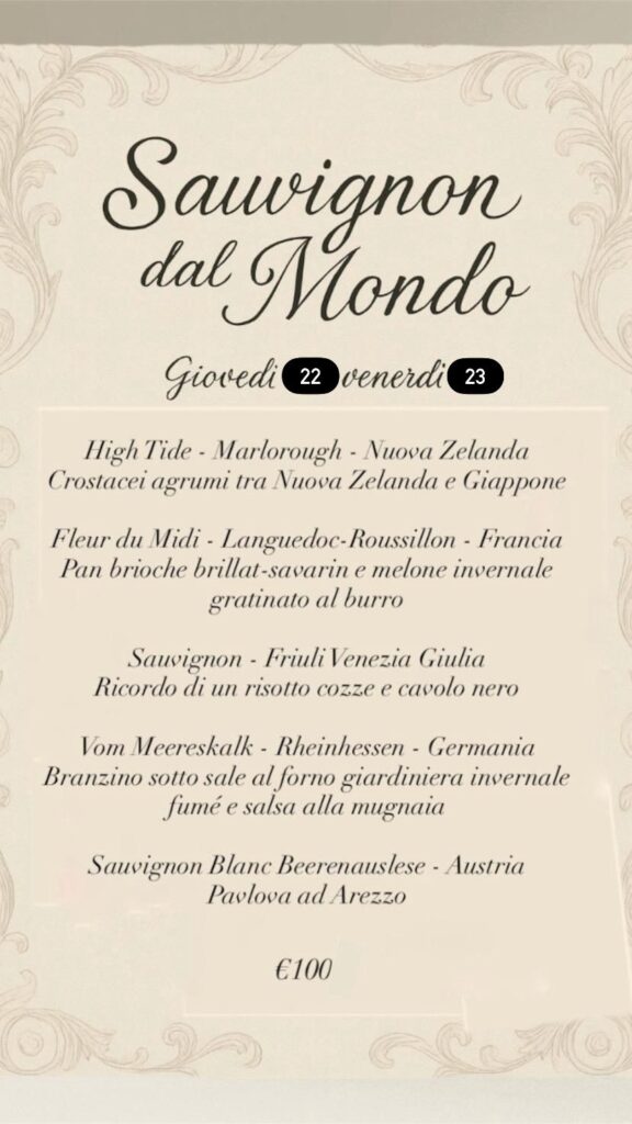 Ogni calice sarà accompagnato da un piatto creato per esaltarne profumi, acidità e struttura,